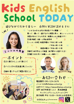 小さなお子様のいる大人の方向けに作成しました。 全体的にカラフルに教室の明るい雰囲気を出すようにし 大事なお子様が楽しく通えるのではないのかと思わせるデザインを意識しました。 先生の部分は笑顔の先生を選び、親しみやすい雰囲気にしました。