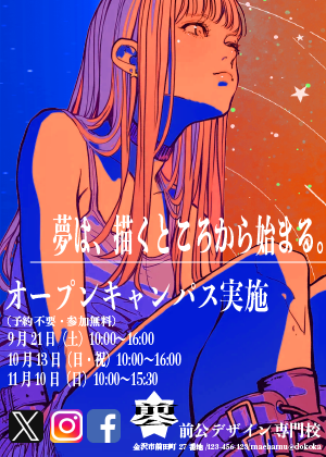 デザイン専門学校のポスターを作成しました。ターゲットは18~20歳前半で隠していた才能を 明るい未来に向かってという感じで作りました。元々はピンクの画像の女の子だったですが、夕日にしたかったので Photoshopで色相彩度を使用し調整しました。背景も同じです。明るい方には星などを散りばめられたのを使用し明るい未来を表現。 実施内容は大きく表示してわかりやすくしました。SNSアイコンを載せてポスターをみて学校の名前を検索するという流れに なればいいなと思い作成しました。