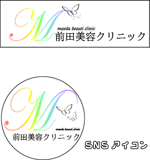 前田のMを協調させてフォントもキレイめにしました。 Mを虹色にしたのは「なりたい自分になれる」「多様性」をイメージしました。 蝶々が何色に染まるのかは「なりたい自分カラー」ということで無色にしました。 SNSアイコンは蝶々が見切れるので少し下に配置しました。