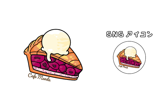 CAFEのロゴを作成しました。できるだけわかりやすくかつシンプルなのを意識しました。 ケーキのイラストはAlbispaintで作成したケーキです。ブルーベリーを意識して作成しました。 Photoshopで切り抜き、Illustratorで調整しましたが、無駄な情報を入れないようにしできるだけシンプルにしました。 このままお店のSNSにも使用できるようにし、小さなアイコンでもケーキが大きく表示してあるので 認知しやすいブルーベリーケーキにしました。
