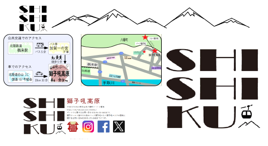 獅子吼高原のロゴは私の好きなバンドのロゴをオマージュしたデザインです。 右下には目玉のパラグライダーと山を入れて作成しました。収益化を目指したいので ロゴはどのグッズにも馴染むようにしました。