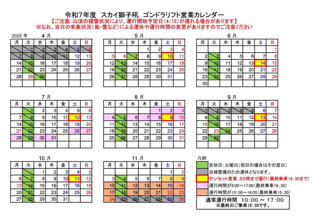 | 2025年04月25日 | 【獅子吼】 | スカイ獅子吼ゴンドラの運行開始について |