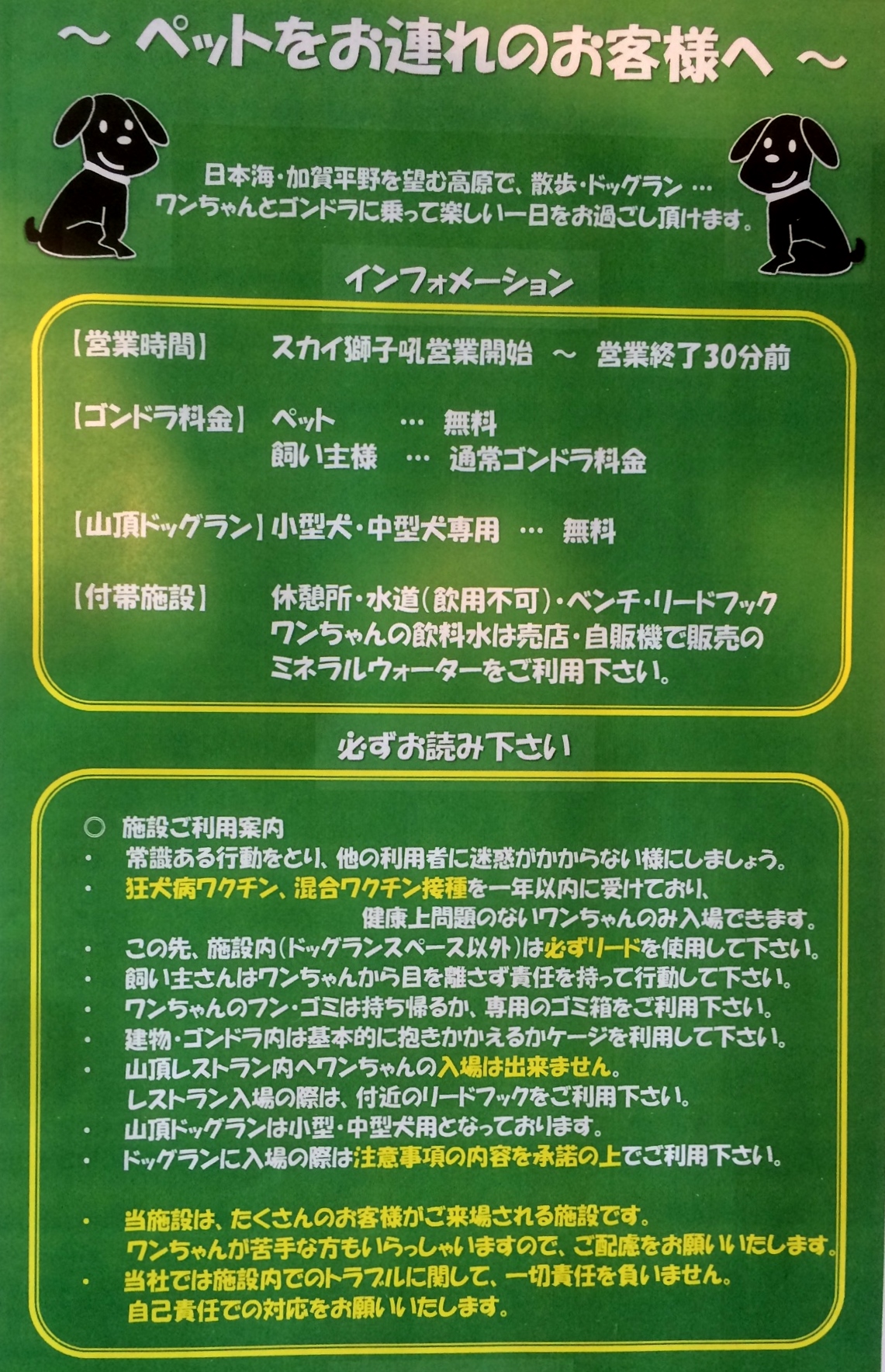 なお、ペットのゴンドラ乗車は無料となっておりますので、お気軽にご利用ください。