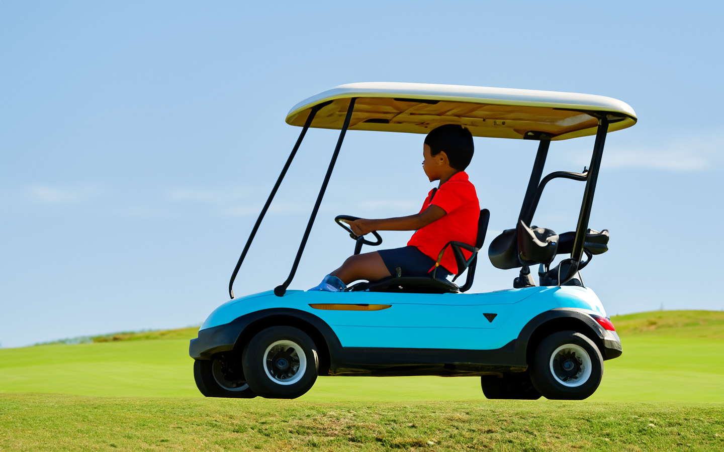 旧ゲレンデを周回する自動運転のカートに乗れば、お子様も運転手気分を味わえます。
