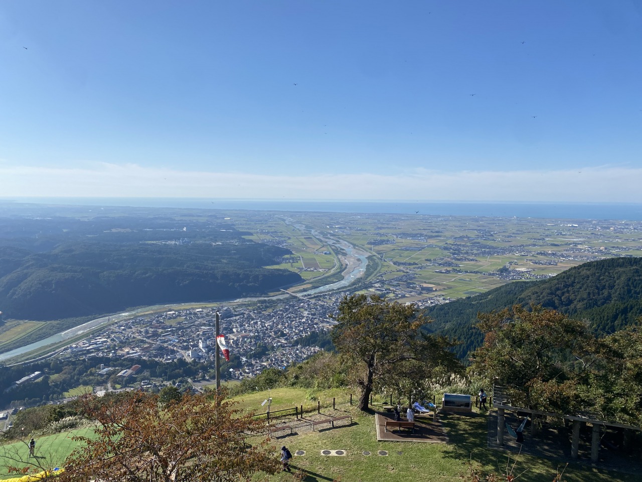 見渡せます。白山平野から遠く日本海まで一望のもと。