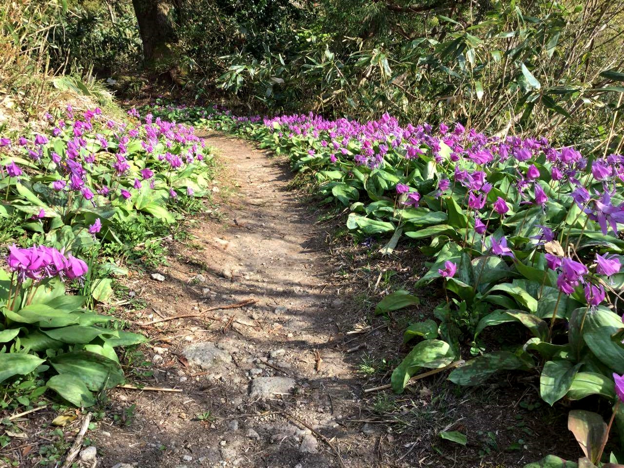 春は新緑の中、カタクリやズミの花が見事に咲きそろい、秋になるとアケビ街道といわれるほど豊かな恵みの山道を楽しめます。